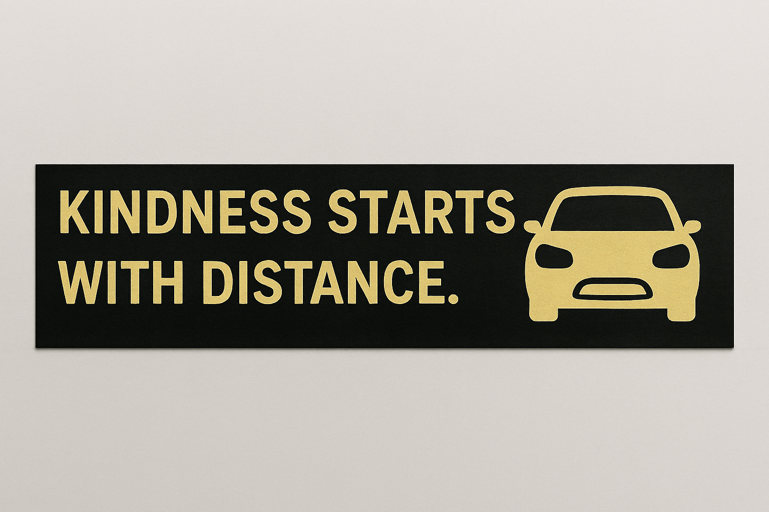 If you’re reading this up close, you might already be proving the point: kindness isn’t just about words—it’s about action. Tailgating shows impatience, but giving space shows respect. This VibeStik challenges drivers behind you to think twice: Are you being kind, or are you being careless? With its bold message, this bumper sticker flips the mirror back on them, making every mile a test of patience, safety, and compassion. Because real kindness starts with how much distance you’re willing to give.