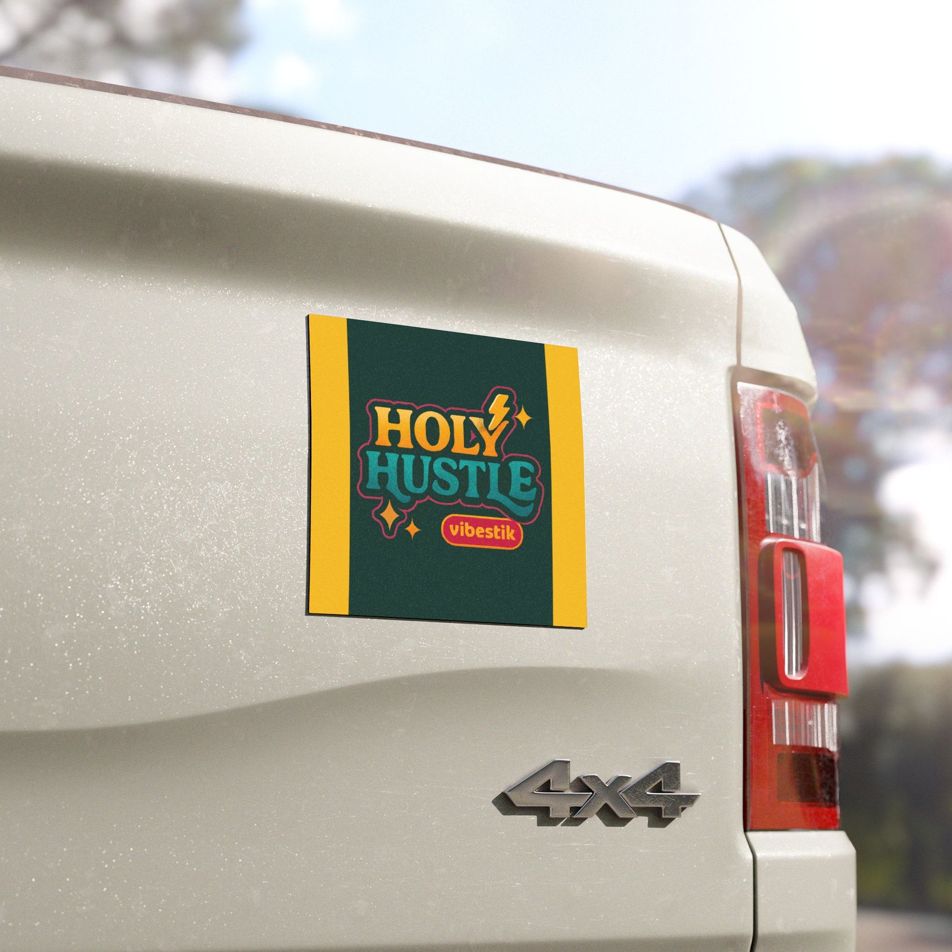 HOLY HUSTLE – Magnetic Bumper Sticker Faith meets grind in this bold, magnetic bumper sticker designed for believers who move with purpose. With graffiti-inspired lettering in golden yellow and teal, a lightning bolt of divine energy, and a textured dark teal backdrop, this sticker is all about spiritual swagger. Whether you’re clocking hours at work, chasing dreams, or just cruising through life, “Holy Hustle” reminds the world that your grind is God-fueled.