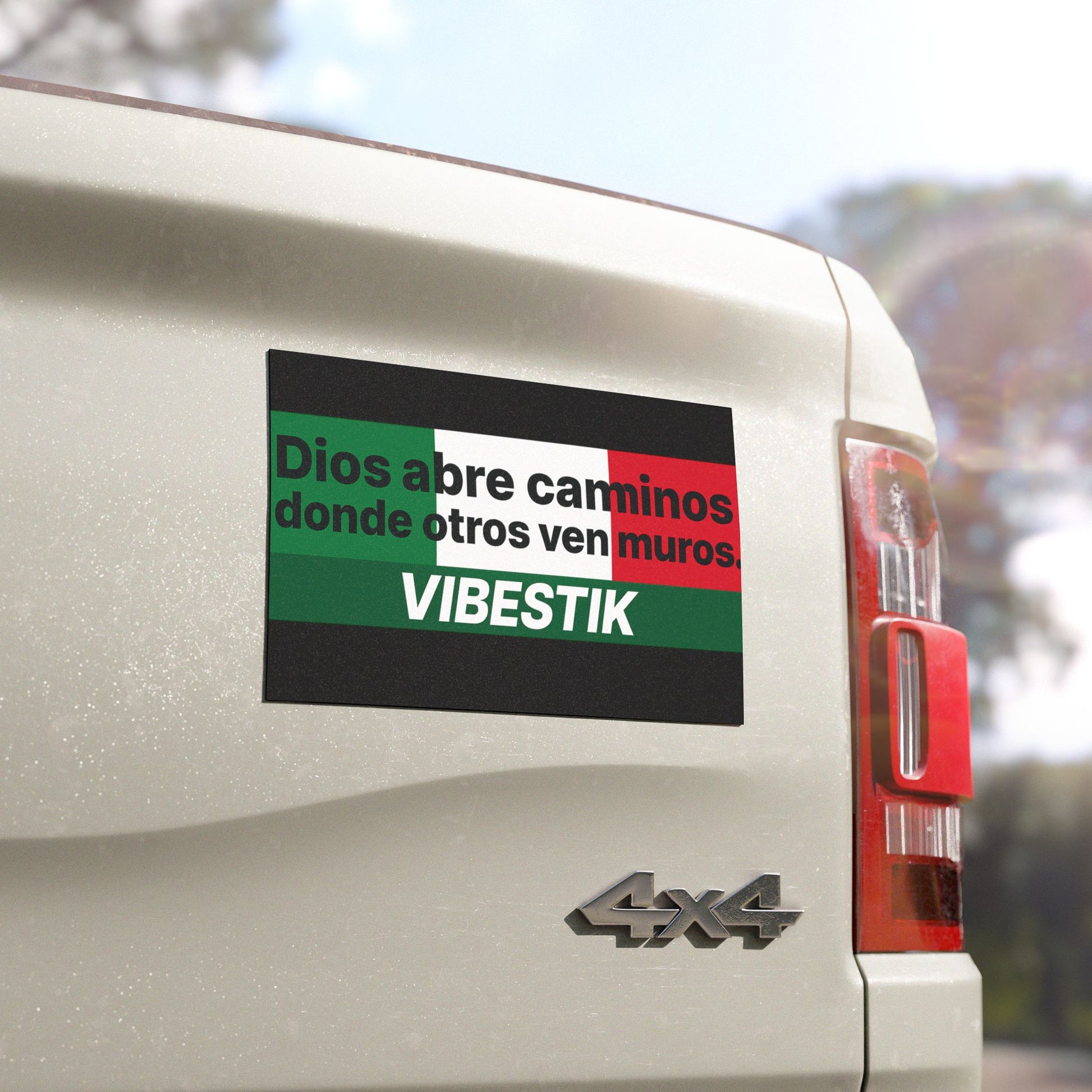 This 5x5 bumper sticker is a declaration of unstoppable faith. Framed by the vibrant colors of the Mexican flag—deep green, warm cream, and rich red—it features the powerful message: “God makes a way where others see walls.” —set in bold, modern typography that speaks to divine vision and breakthrough strength.
